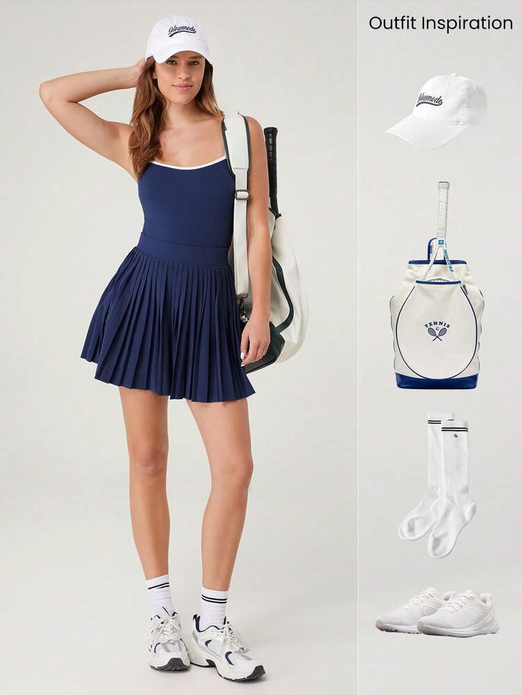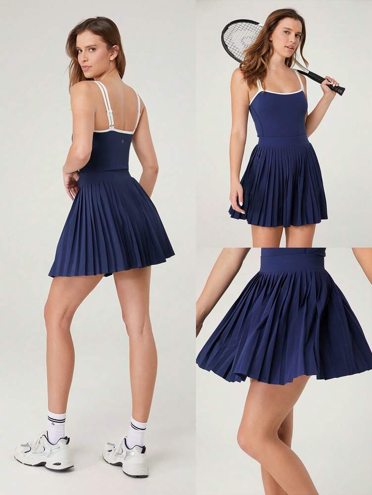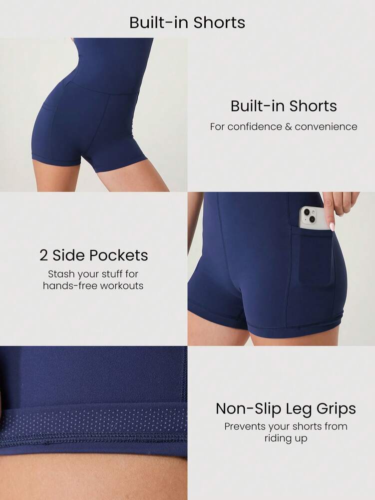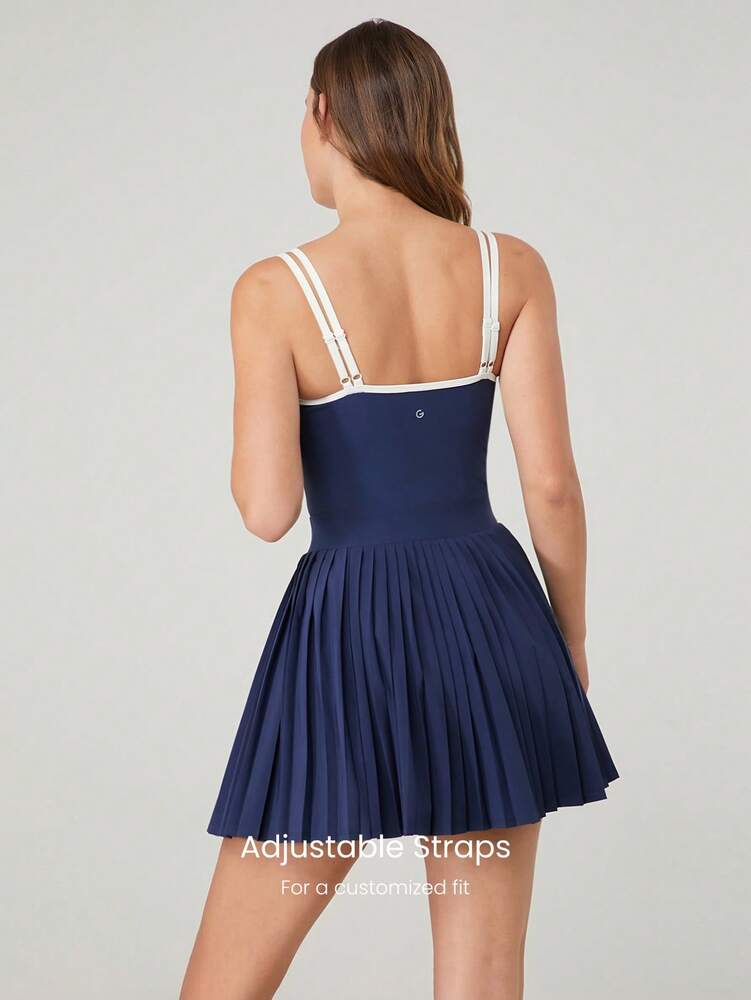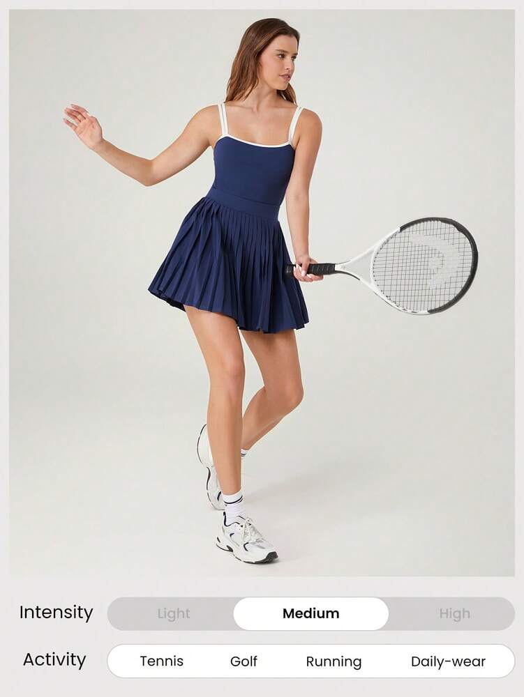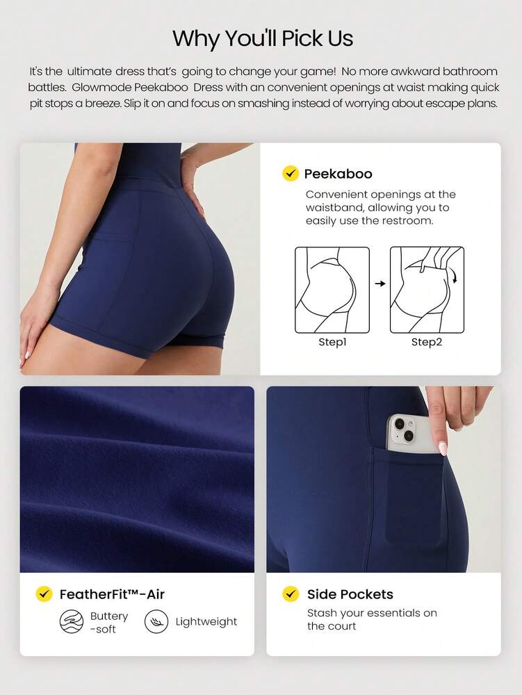 Women's FeatherFit Contrast Color Bodysuit With Removable Skirt Built In Pockets Quick Dry Sports Activewear Yoga Outfit