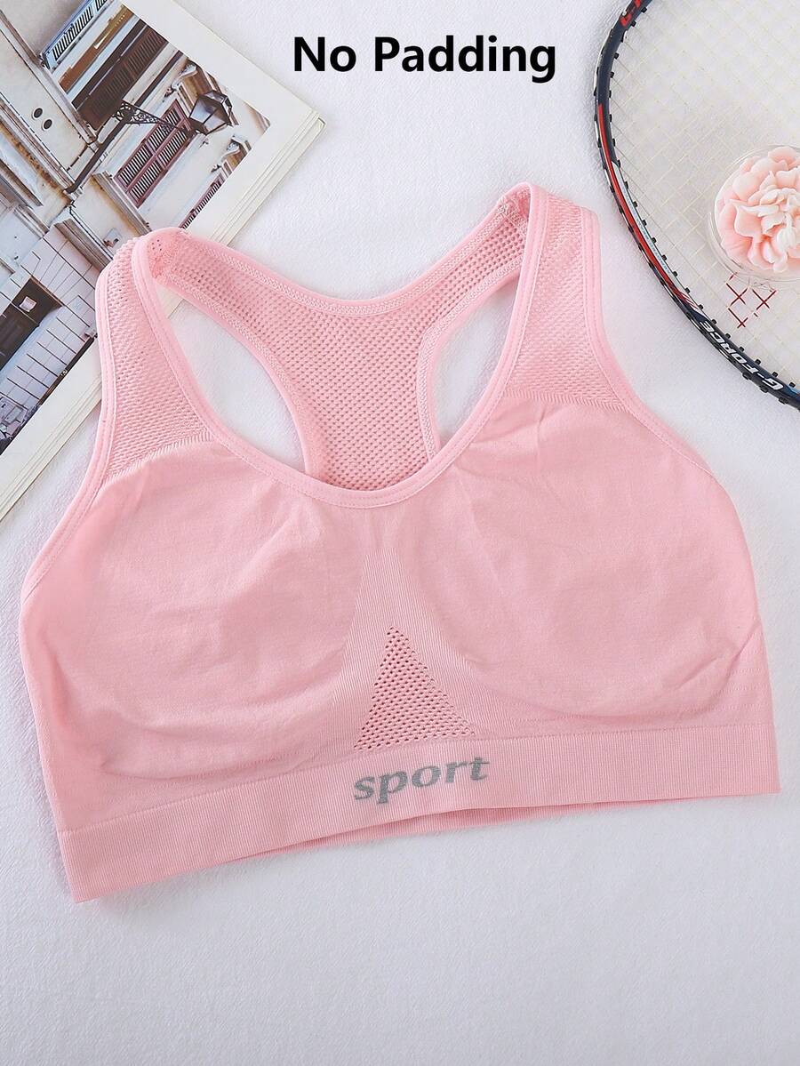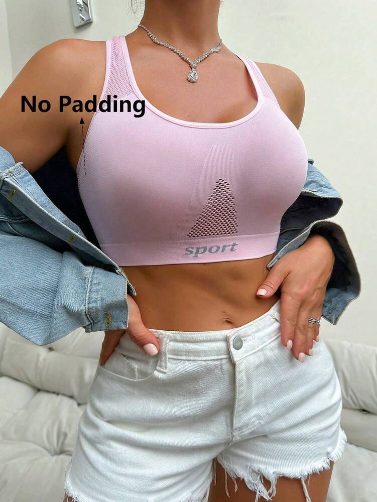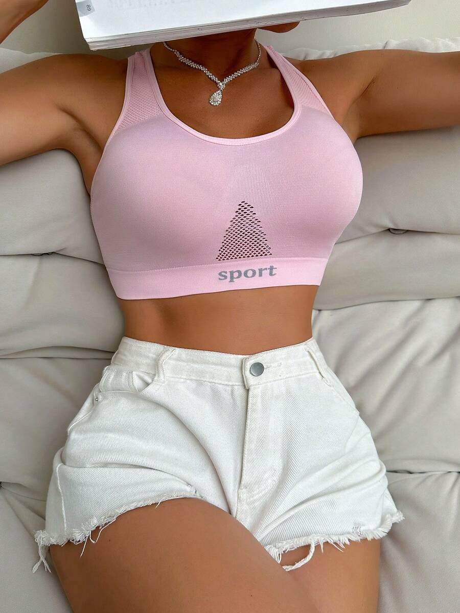 Women's Letter Print Sports Bra With Racerback Design Seamless Gym Top Casual Workout Tank Top Fitness Activewear For Women