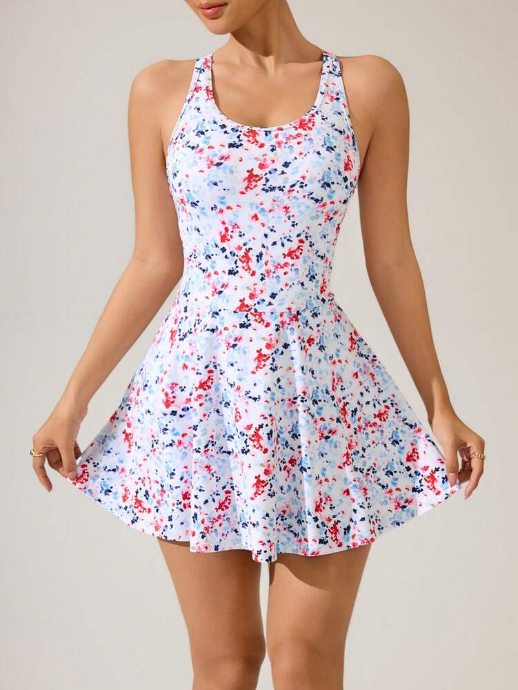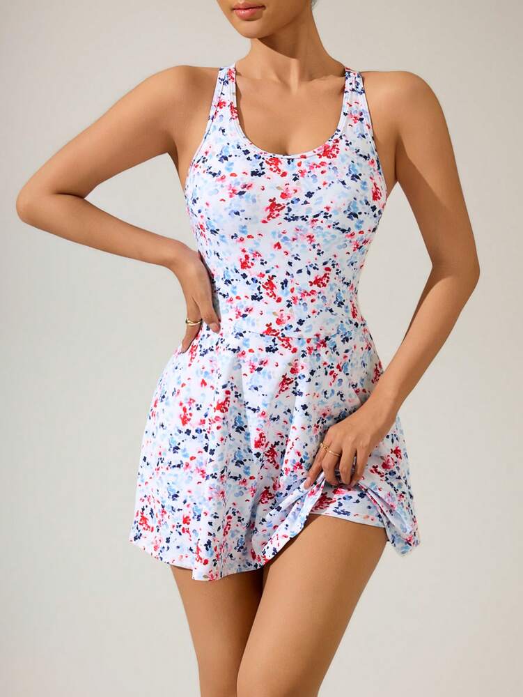 Women's Mini Ditsy Floral Halter Neck Sports Dress Casual Activewear Athletic Outfit Summer Tennis Dress Workout Fitness Clothing