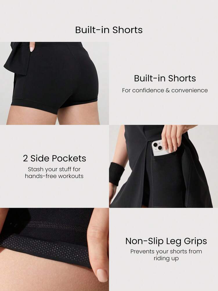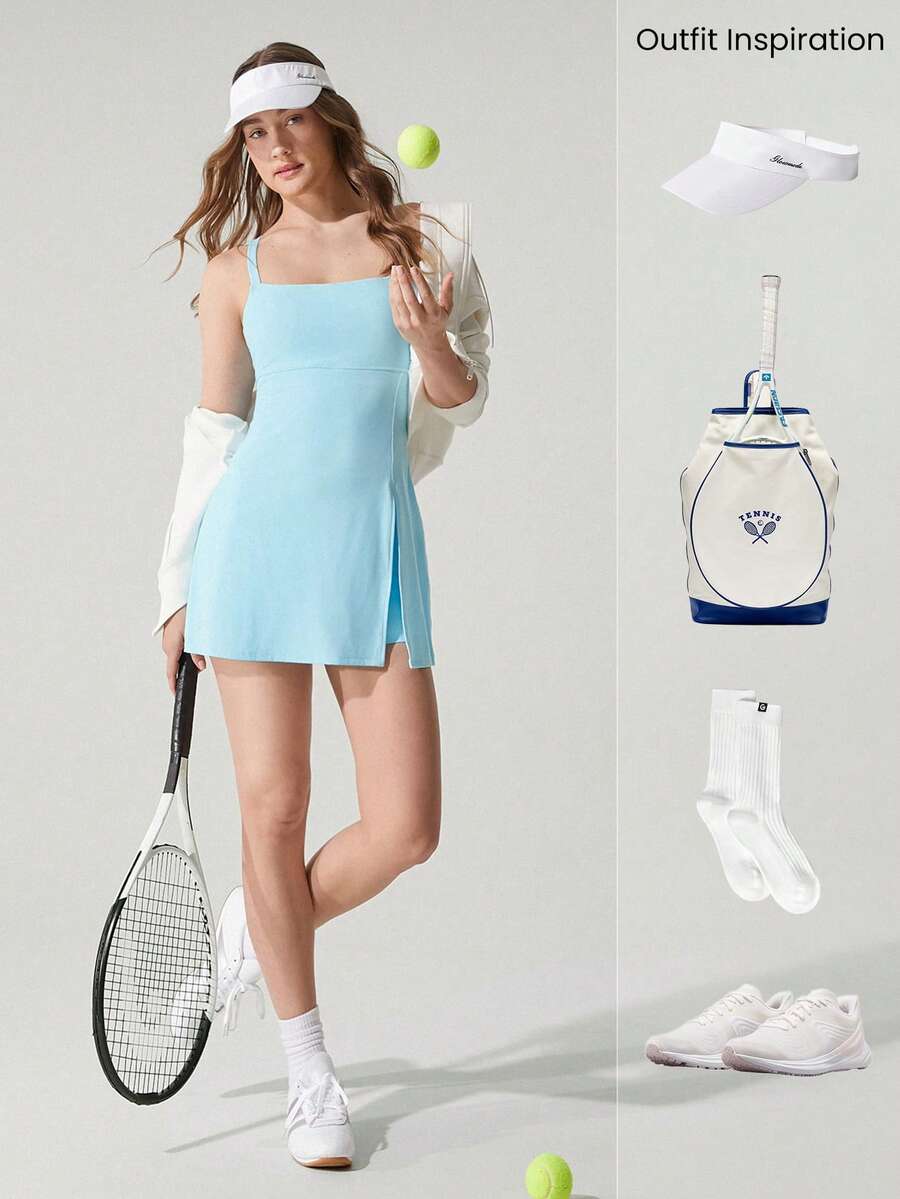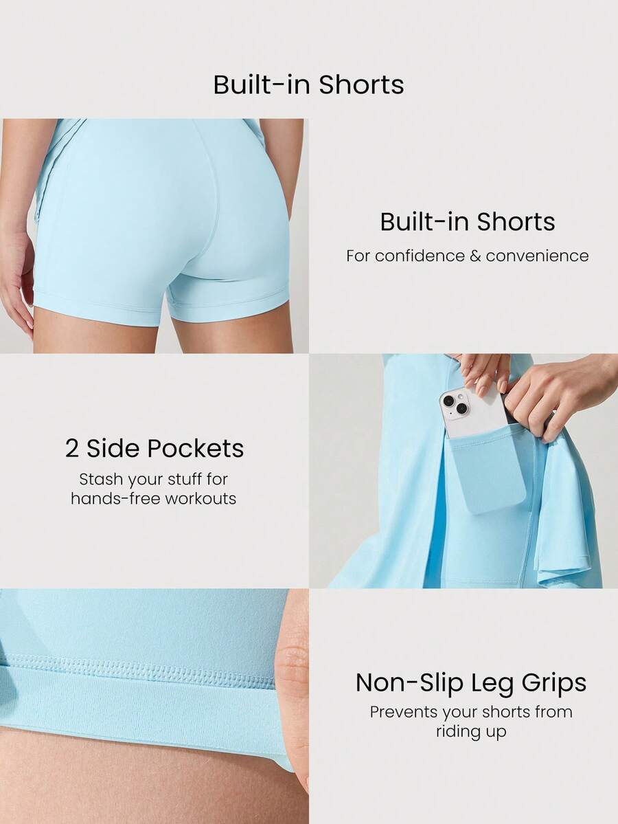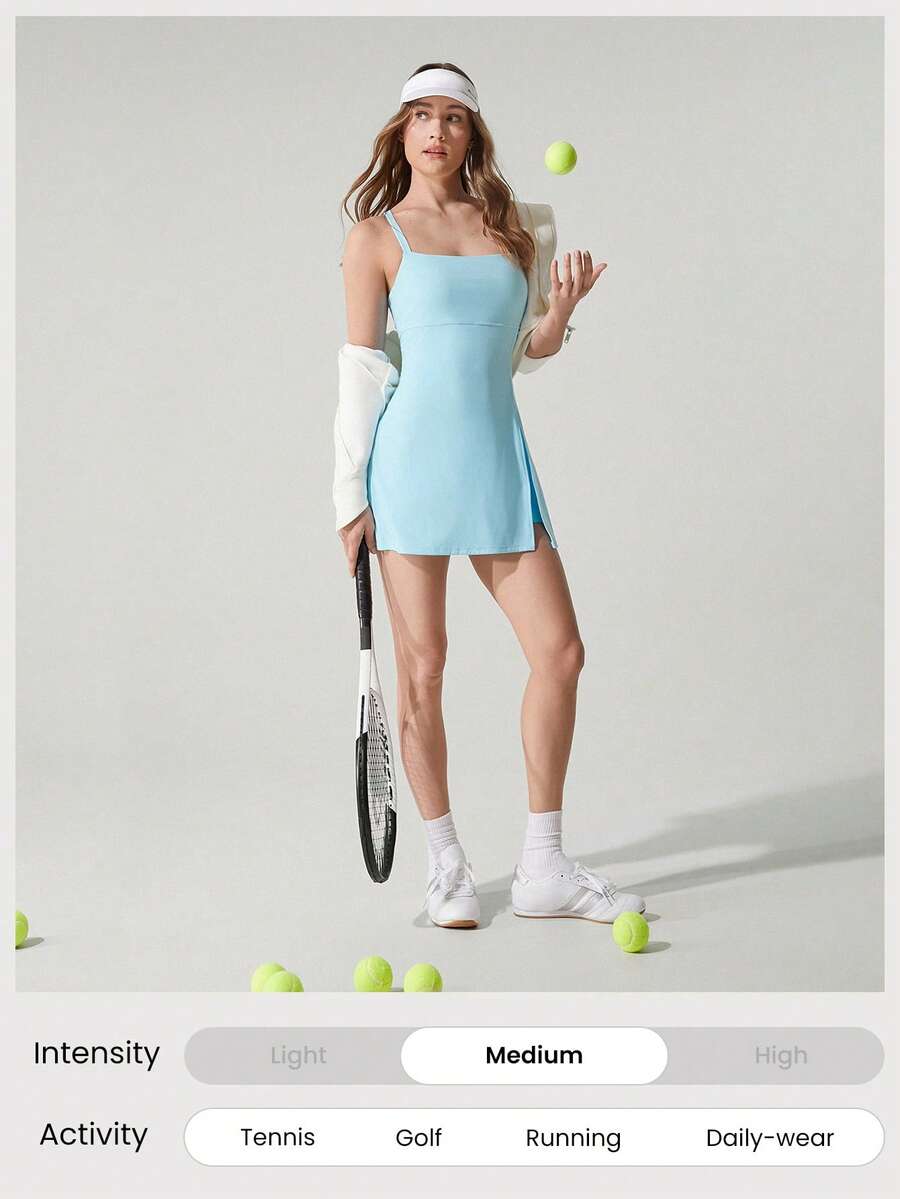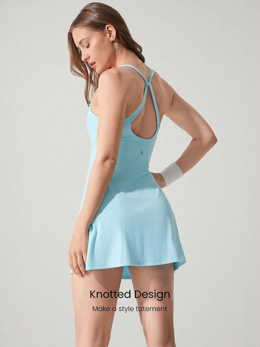 Women's Quick Dry Twist Back Active Dress With Built In Shorts Side Pockets Front Slit Casual Tennis Golf Pickleball Gym Outfit