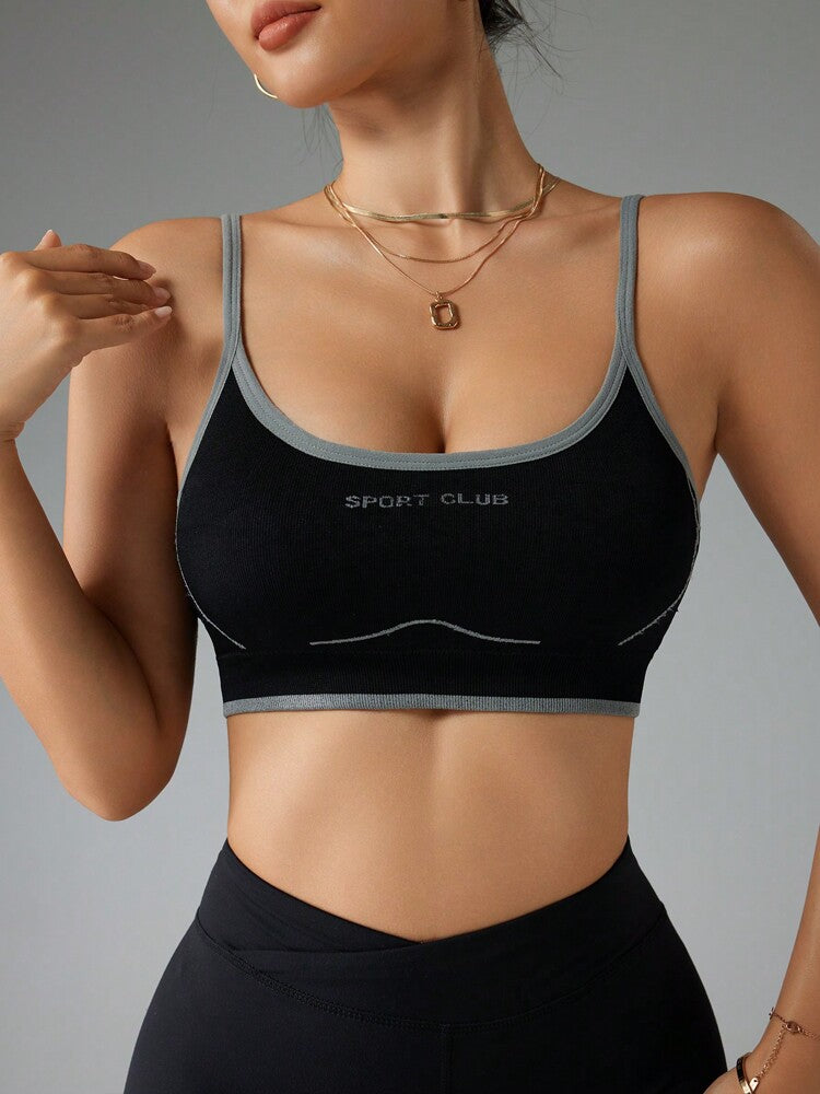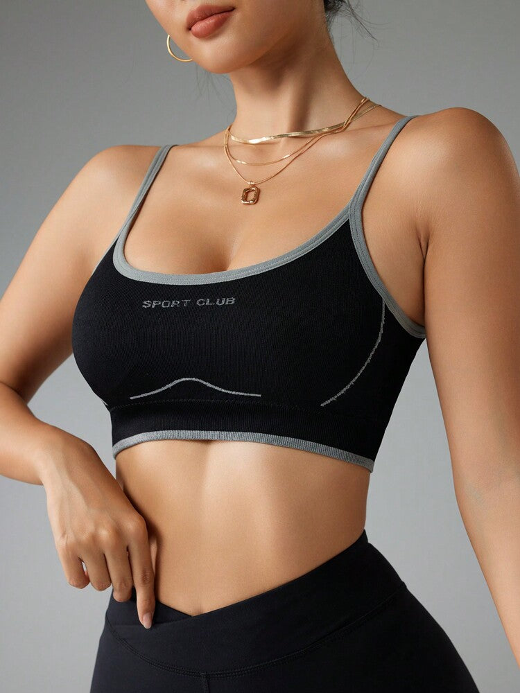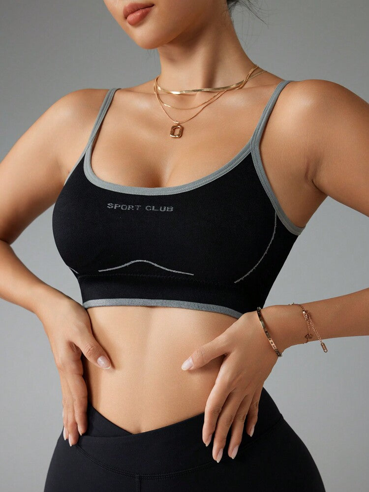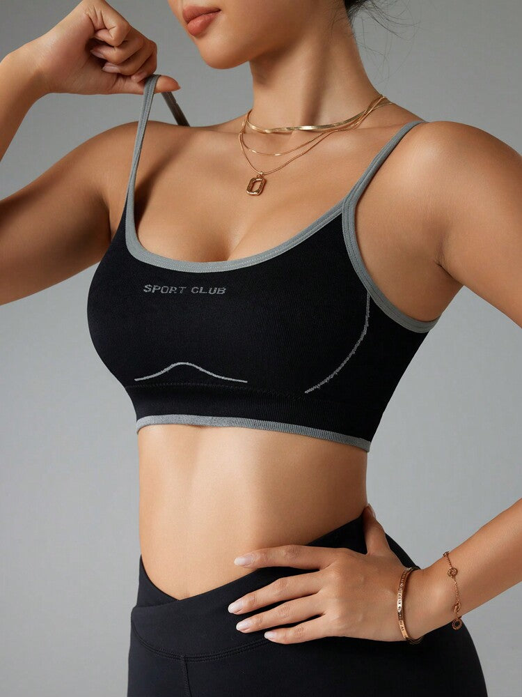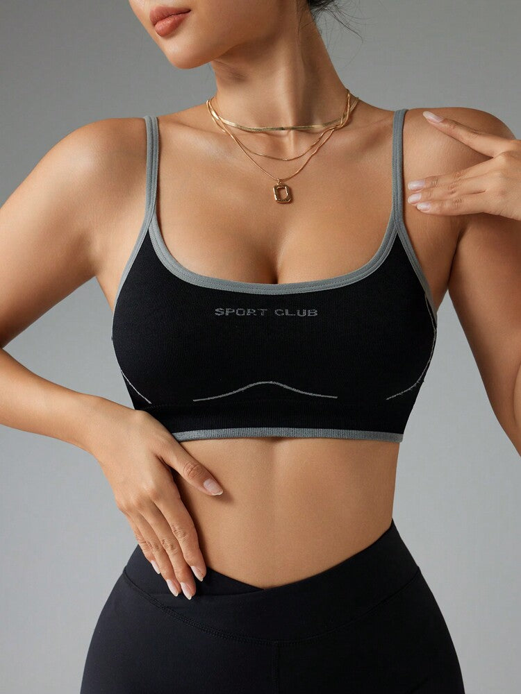 Women's Seamless Letter Print Sports Bra Casual Racerback Gym Top Comfortable Workout Activewear Fitness Crop Tank Top For Women