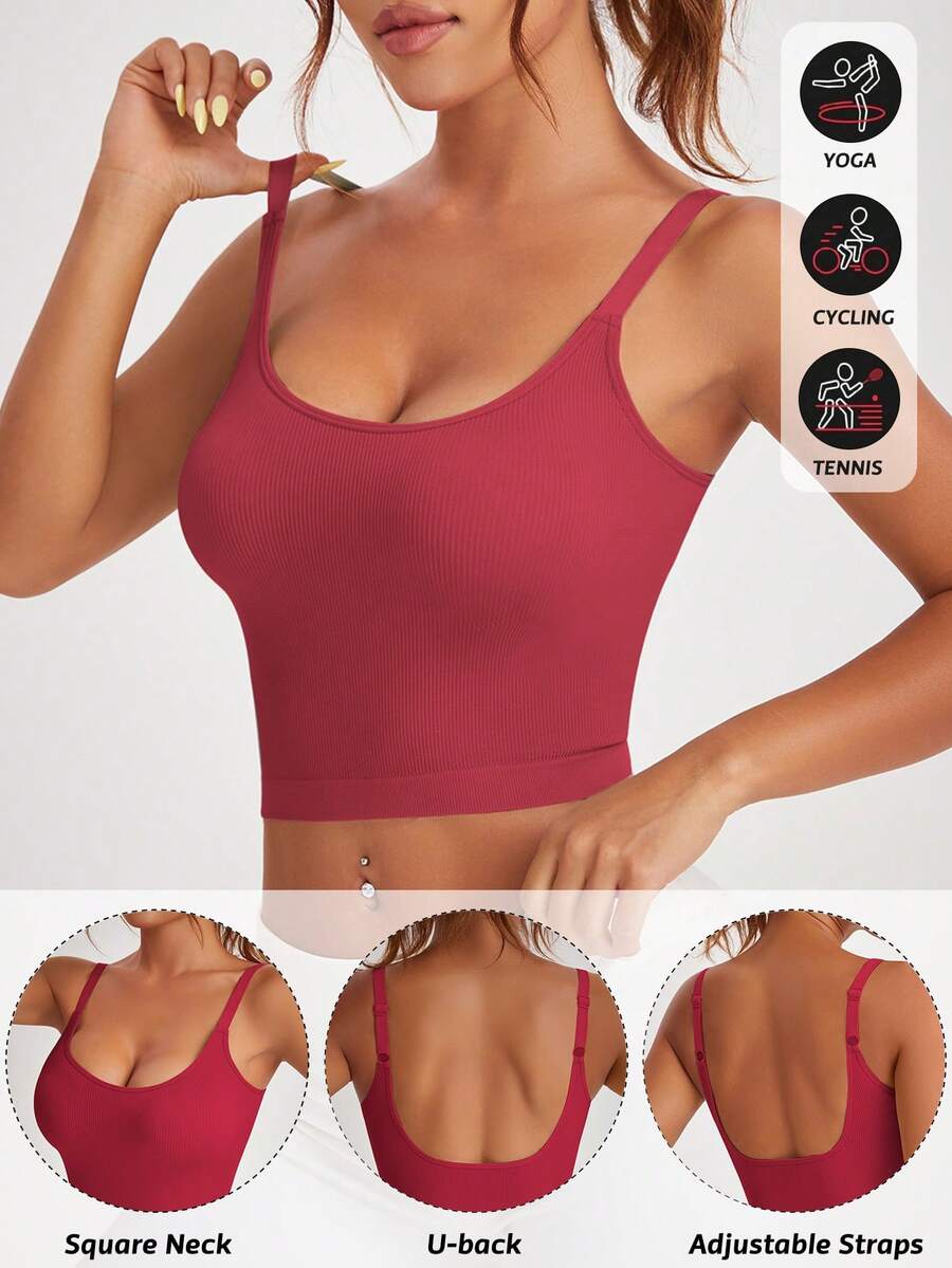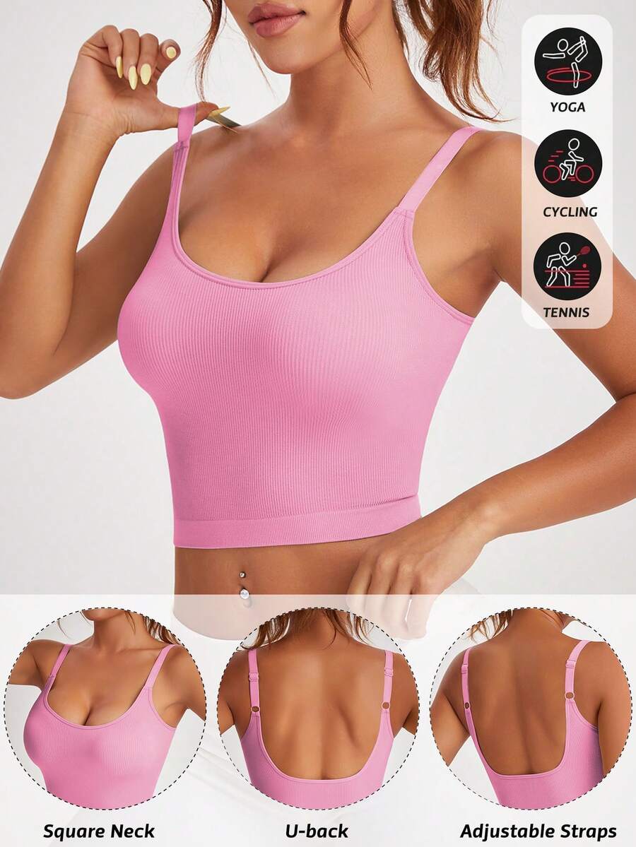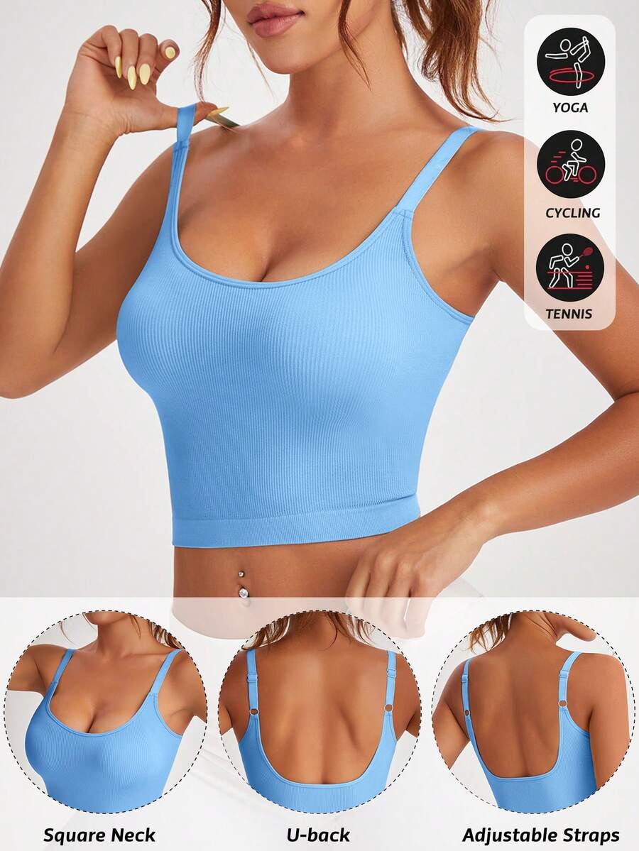 This black, slim-fit crop top features a seamless, rib-knit fabric blend (90% polyamide, 10% elastane) with high stretch for optimal comfort during yoga or studio workouts. Designed with a backless, spaghetti strap neckline and sleeveless cut, it offers breathability and freedom of movement. The unlined, plain pattern design provides a sleek look without padding or pockets. Easy to care for, simply machine wash and avoid dry cleaning to maintain its quality. Ideal for activewear that combines style and performance.