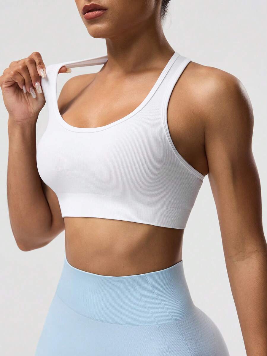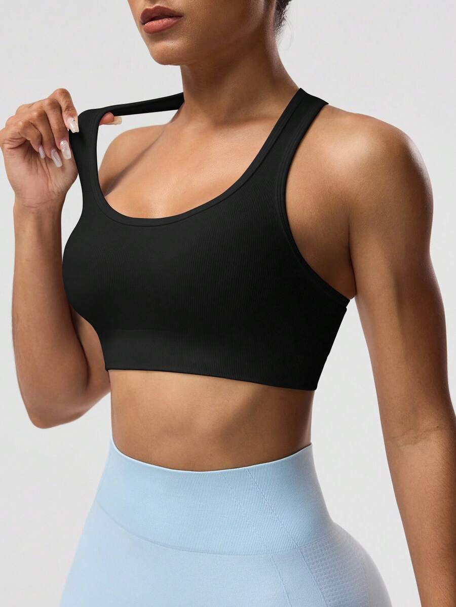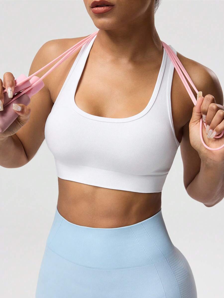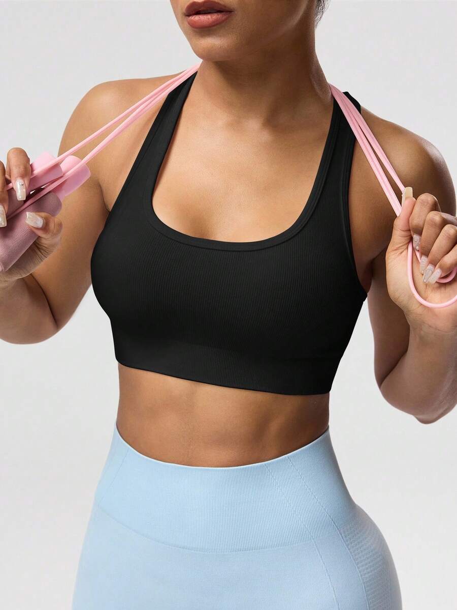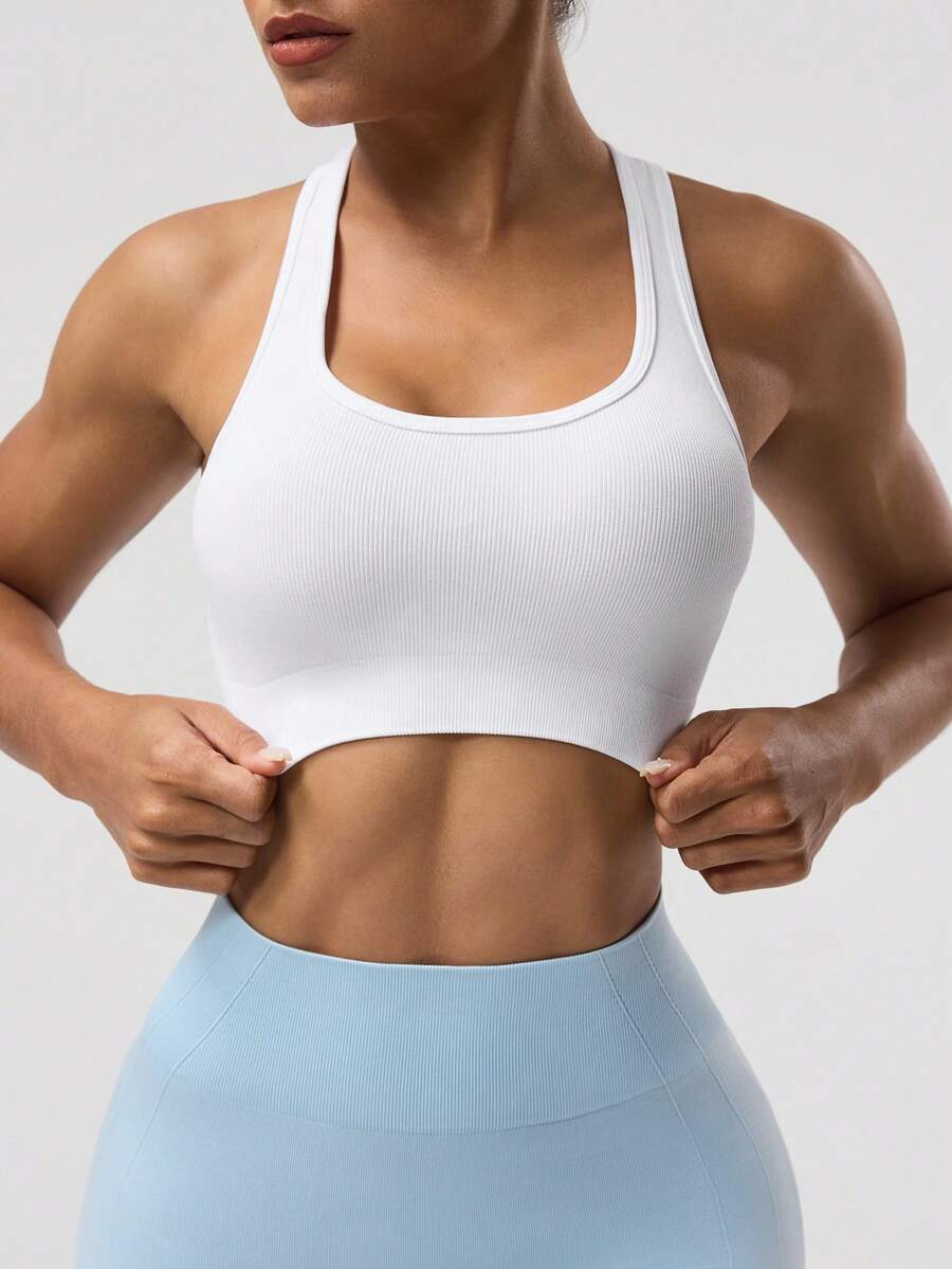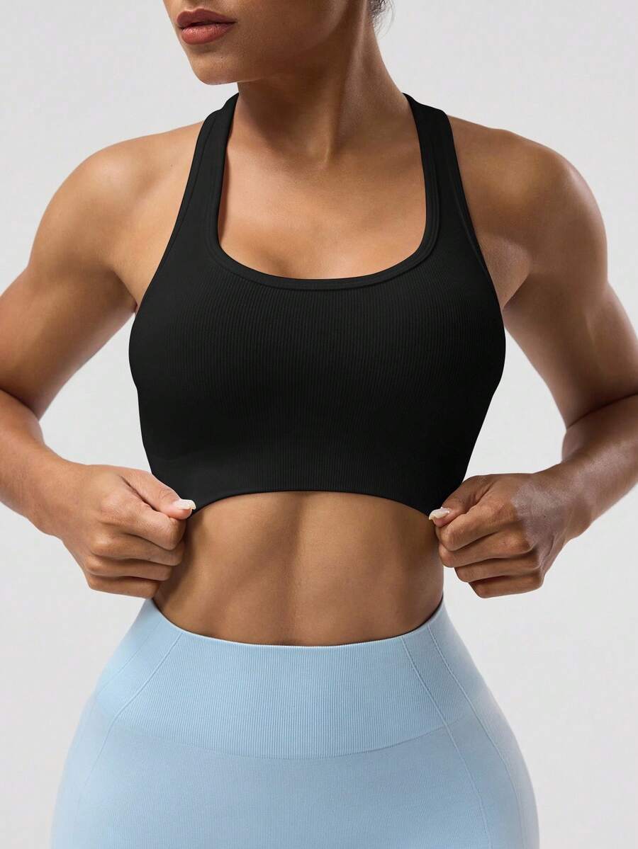 Women's Solid Color Sleeveless Yoga Racerback Tank Top Seamless Exercise Sports Bra Gym Activewear Workout Shirt Slim Fit Casual