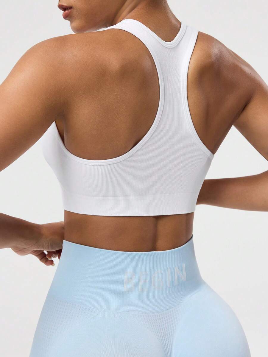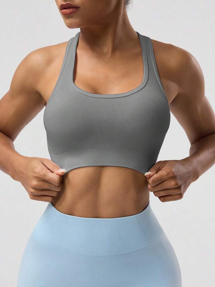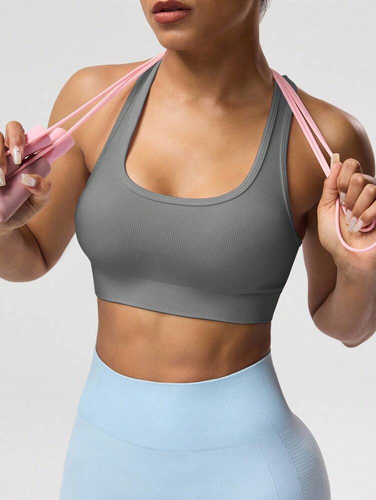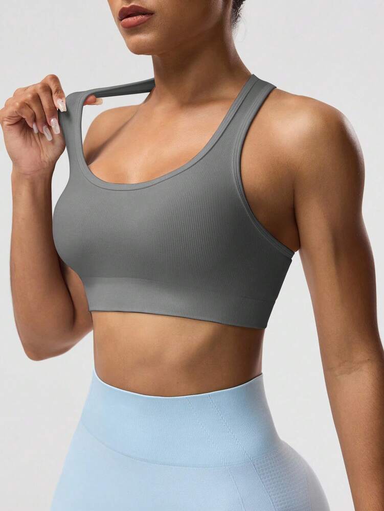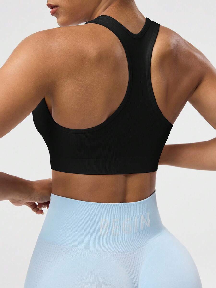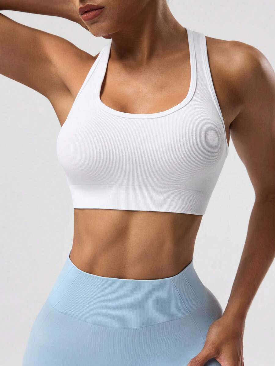 Women's Solid Color Sleeveless Yoga Racerback Tank Top Seamless Exercise Sports Bra Gym Activewear Workout Shirt Slim Fit Casual