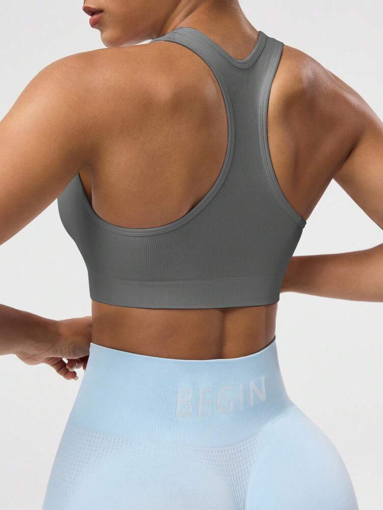 d a racerback design, providing optimal support and freedom of movement during workouts. Made from a high-stretch blend of 90% polyamide and 10% elastane, it offers a slim, seamless fit that contours the body comfortably. The cropped length enhances breathability, while its plain dark grey fabric resists sheerness for reliable coverage. Ideal for running, gym sessions, or casual wear, this unlined activewear piece is easy to care for with machine wash or professional dry clean options.
